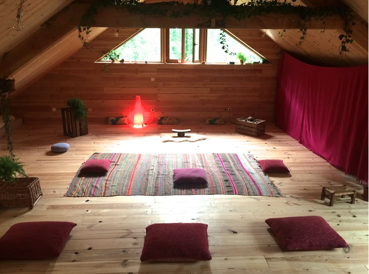 Selon la taille du groupe, nous pratiquerons dans la salle mansardée. Elle est chaleureuse et enveloppante. Si le beau temps est bien au rendez-vous, nous pourrons pratiquer en extérieur.