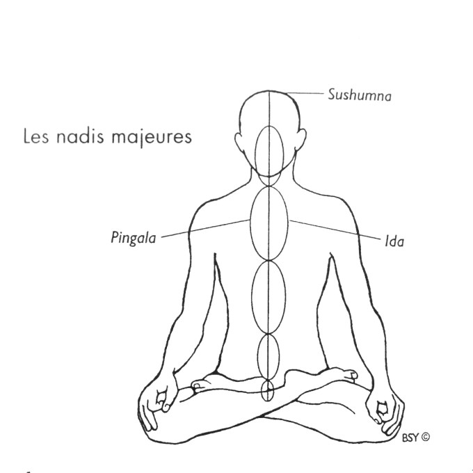 Dans la philosophie yogique, les chakras sont reliés au nadis, ces canaux d’énergie dont les trois principaux longent la colonne vertébrale. Ces canaux sont appelés Ida, Pingala et Sushumna.